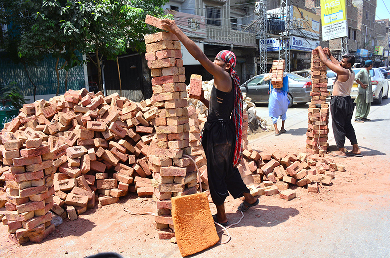 Associated Press Of Pakistan Labourers arrange piles of bricks into neat columns during the construction of a house. This post Labourers arrange piles of bricks into neat columns during the construction of a house. first appeared on Associated Press Of Pakistan and owns the property.